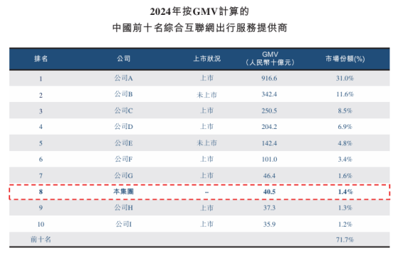 2024年,中国在线机票预计市场规模按GMV计达到约1.38万亿元,其中前五大第三方平台占在线机票预订市场份额约46.2%,公司仅占1.9%的市场份额。2024年,中国在线火车票预定市场的GMV约5292亿元,前五大第三方平台占在线火车票预定市场份额约26.5%,第一名的市场份额约16.9%,公司于其中的市场份额约2.4%。