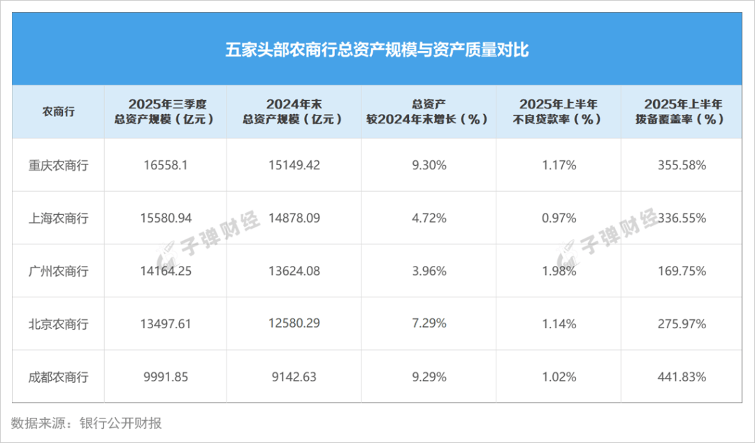 截至2025年末,我国五家农商行的总资产规模已稳居“万亿俱乐部”。